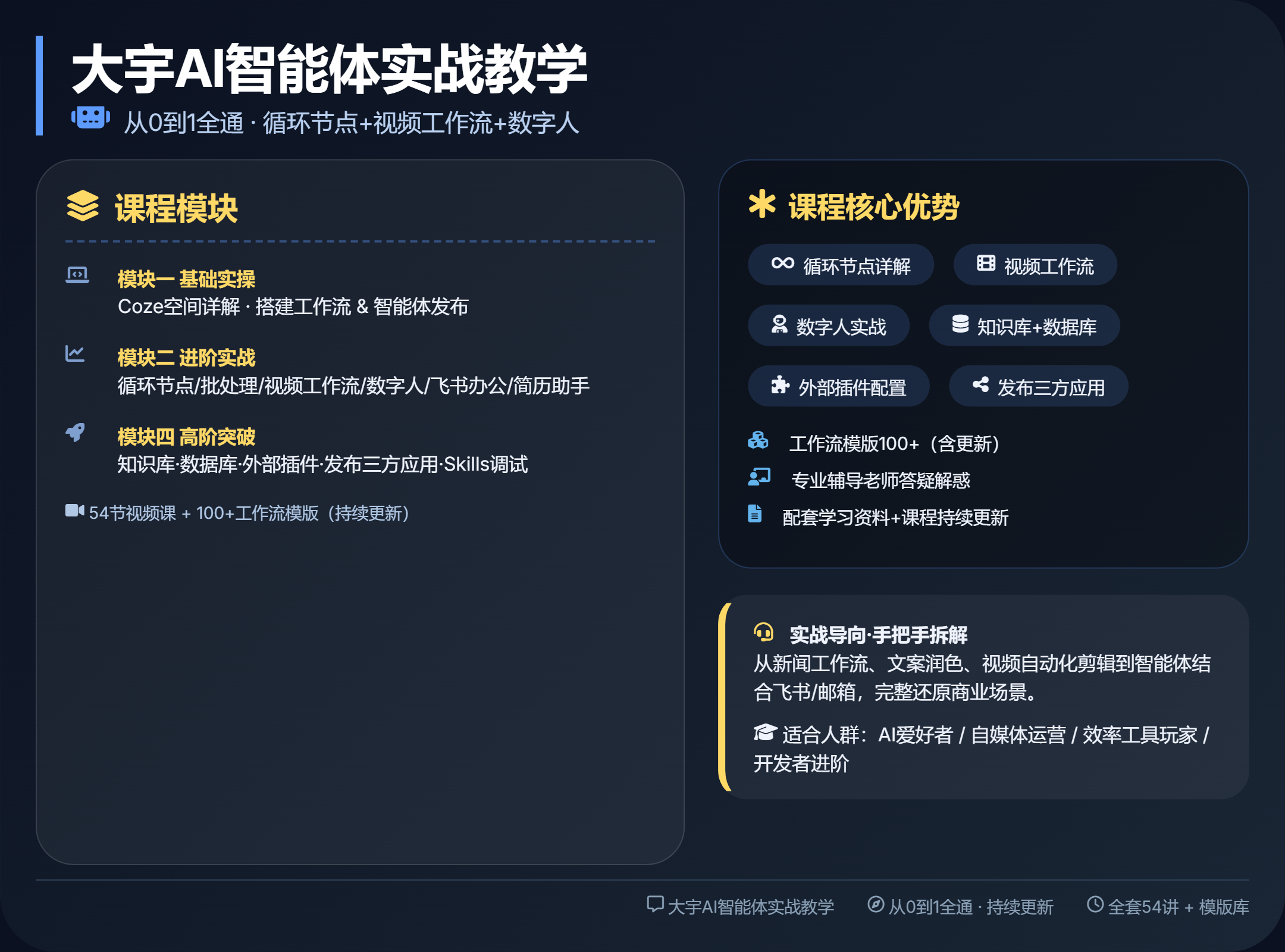【21492】大宇AI智能体实战教学(更新):从0到1全通,循环节点+视频工作流+数字人,实战搭建智能体