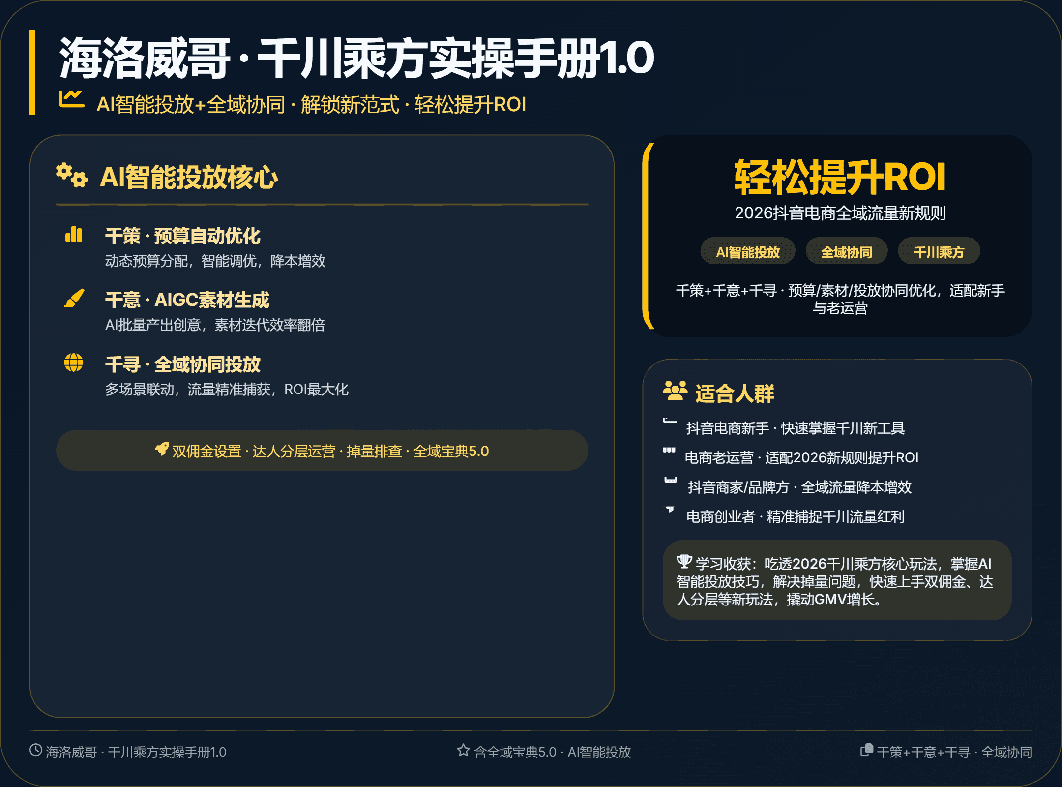 【21496】海洛威哥2026 千川乘方实操手册 1.0(含全域宝典 5.0)AI 智能投放+全域协同,解锁新范式,轻松提升ROI