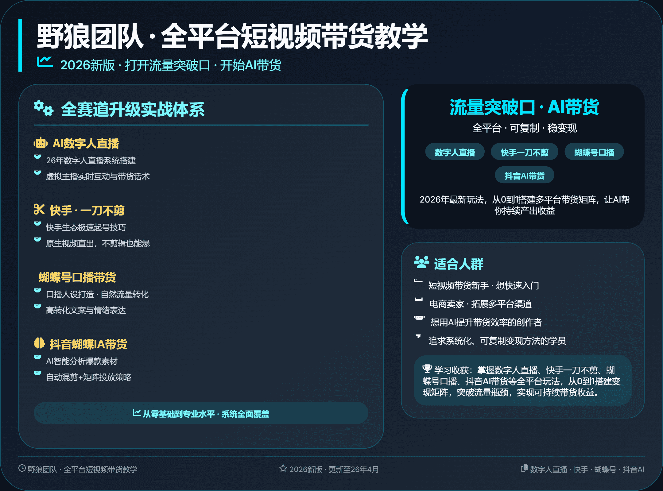 【21510】野狼团队2026新版全平台短视频带货教学,打开流量突破口,开始Ai带货(更新26年4月)