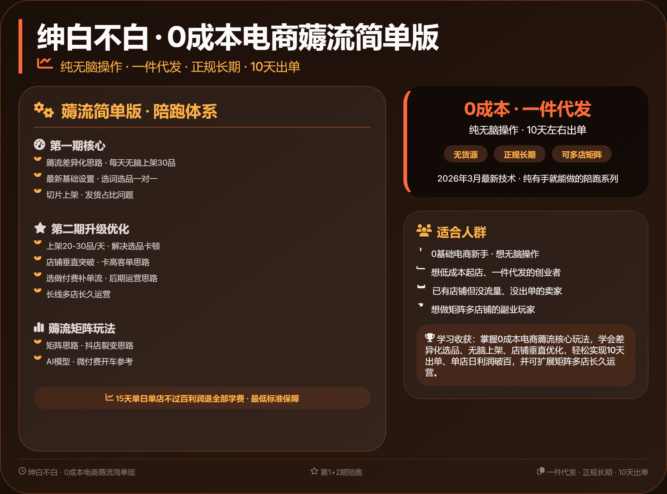 【21516】绅白不白0成本电商薅流简单版:第1+2期陪跑,纯无脑操作,一件代发正规长期,10天出单
