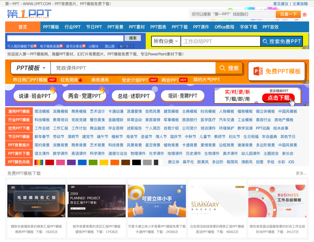 PPT超级市场这是一个号称下载永不收费的PPT资源网站,里面有各式各样的免费PPT模板资源,先不说数量,光模板类型就多达70多种,不管你是上班族还是学生都非常适用。