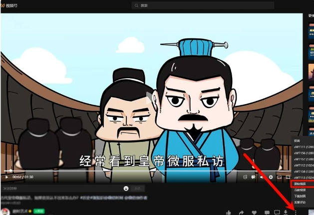2. **下载单个视频**:通过微信打开视频号,点击任意视频下方的“...”选项,选择需要的画质进行下载。