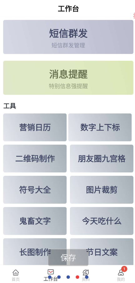 【应用简介】一款微商助手App,微商必备,高效助手! 提供朋圈文案、图篇素材、营销工具等多种功能,帮助你提升微商业务效率,轻松打造个牌。 界面简洁,作便捷,是你的微商好帮手!注册登录